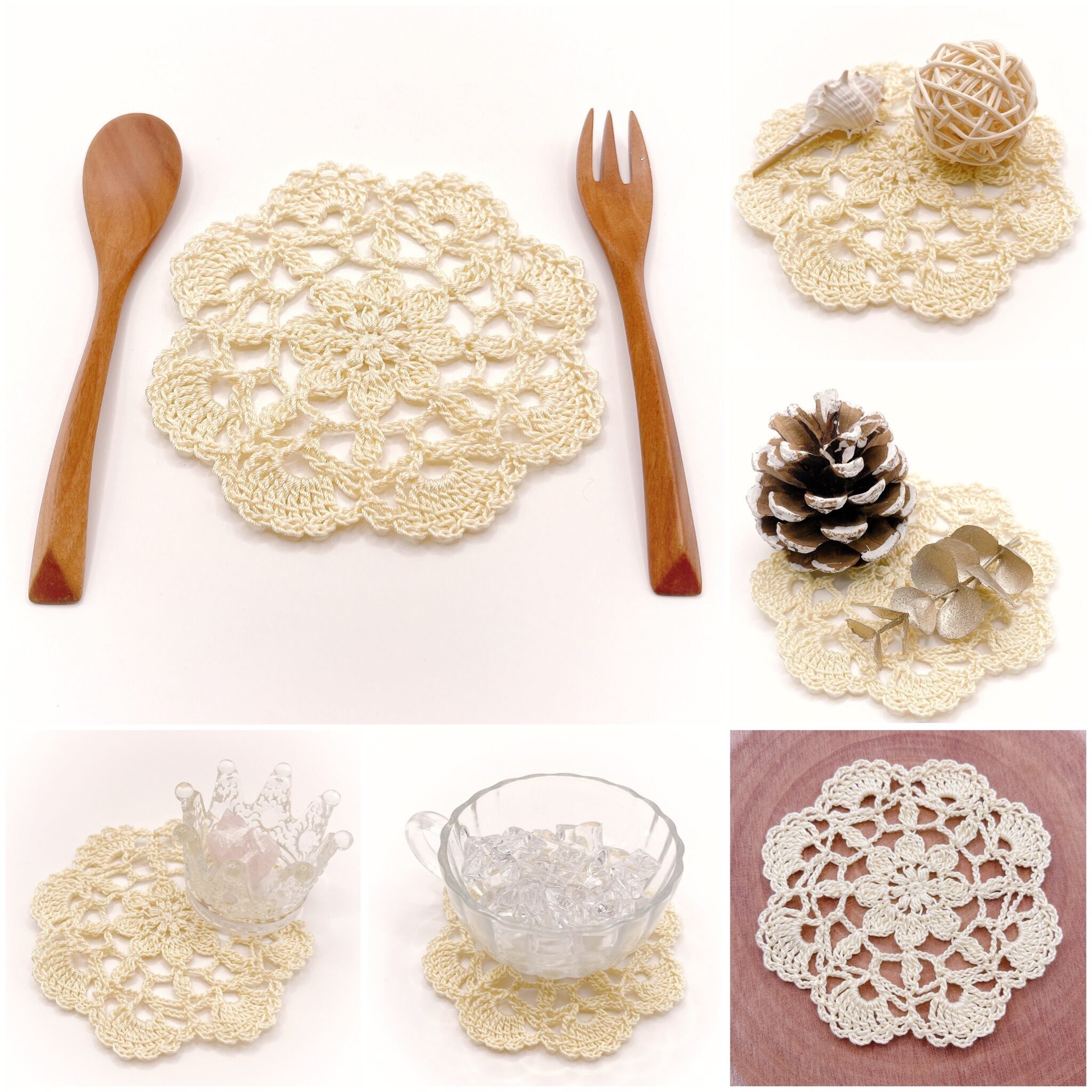 コースターや、ちょっとした物置スペースに使いやすいドイリーです。
