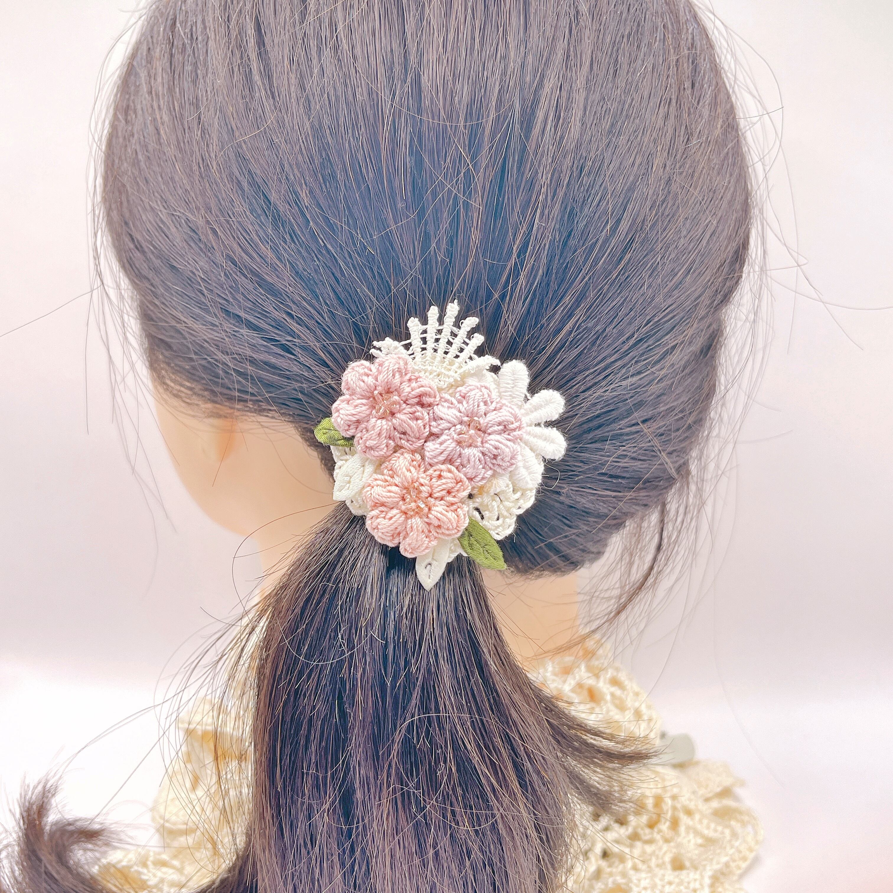 レースをたっぷりと使った、ナチュラルなポニーフックです。