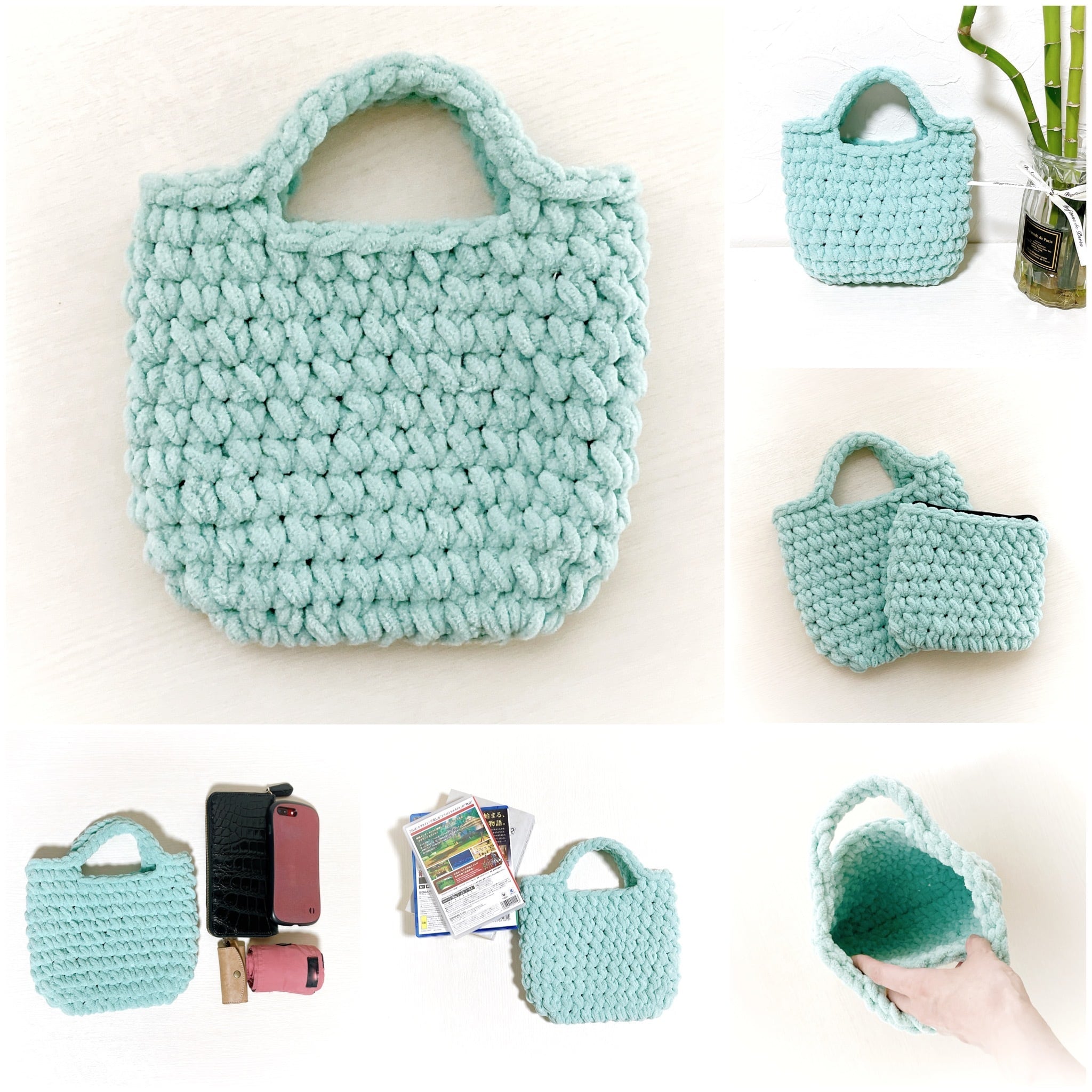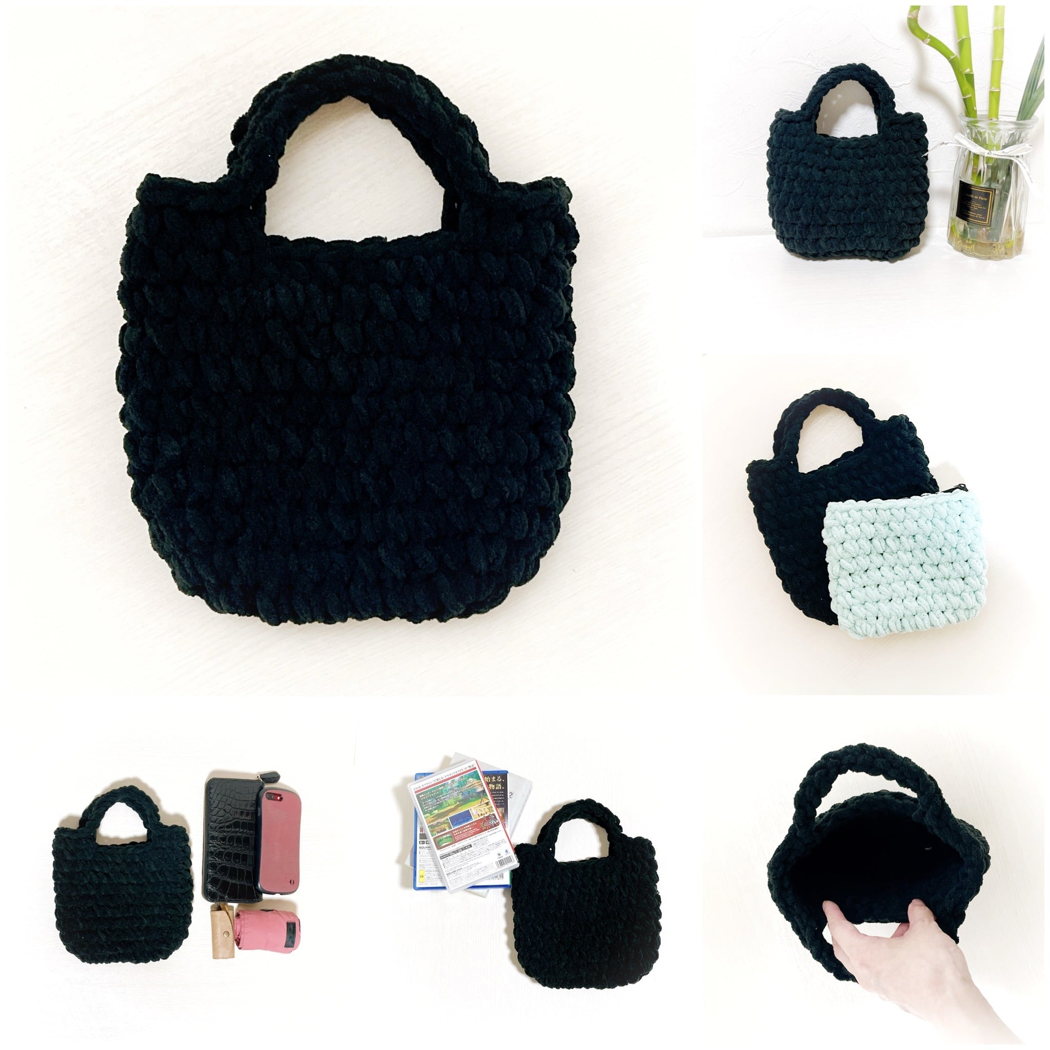 ふわふわ、もこもこの極太モールで編んだハンドバッグです。