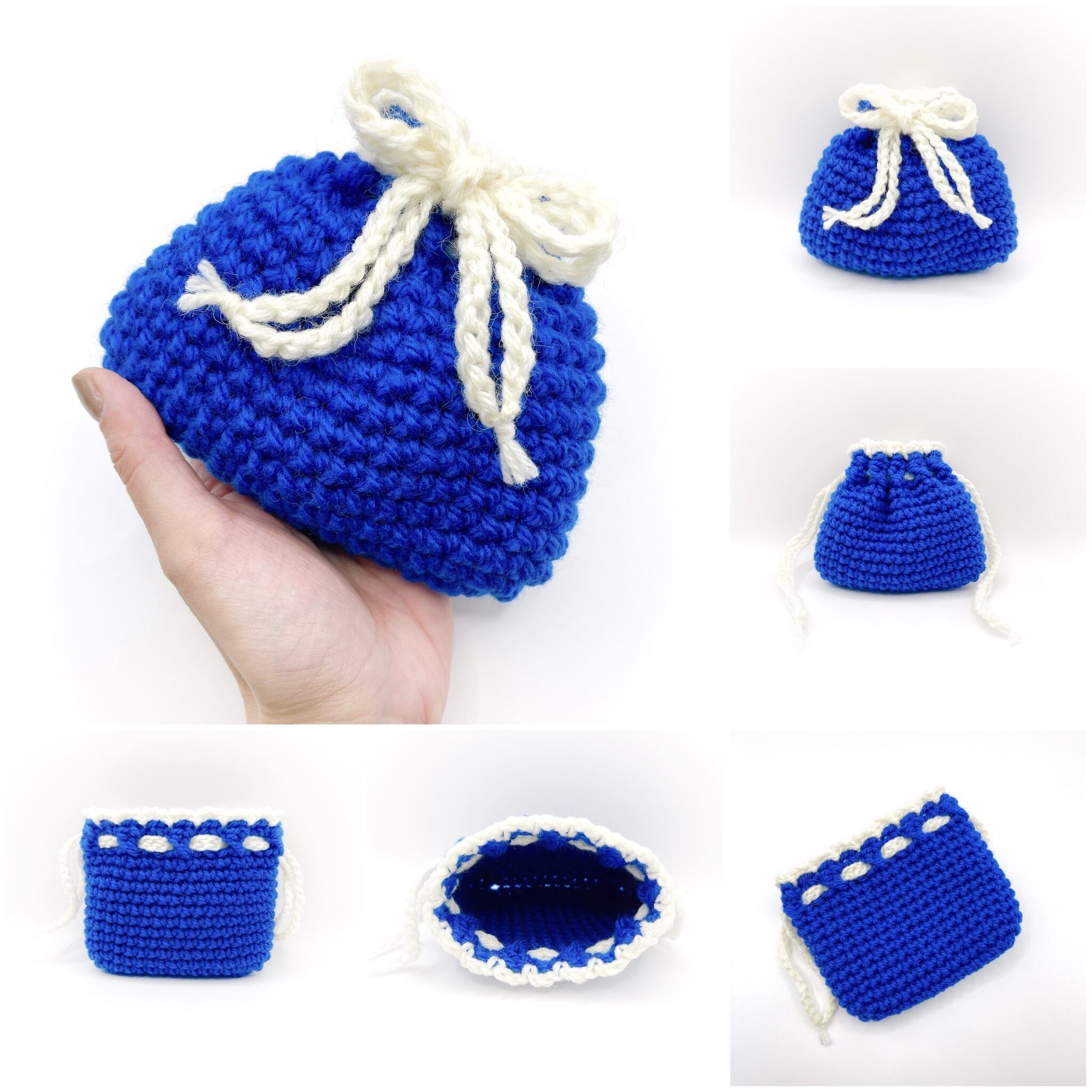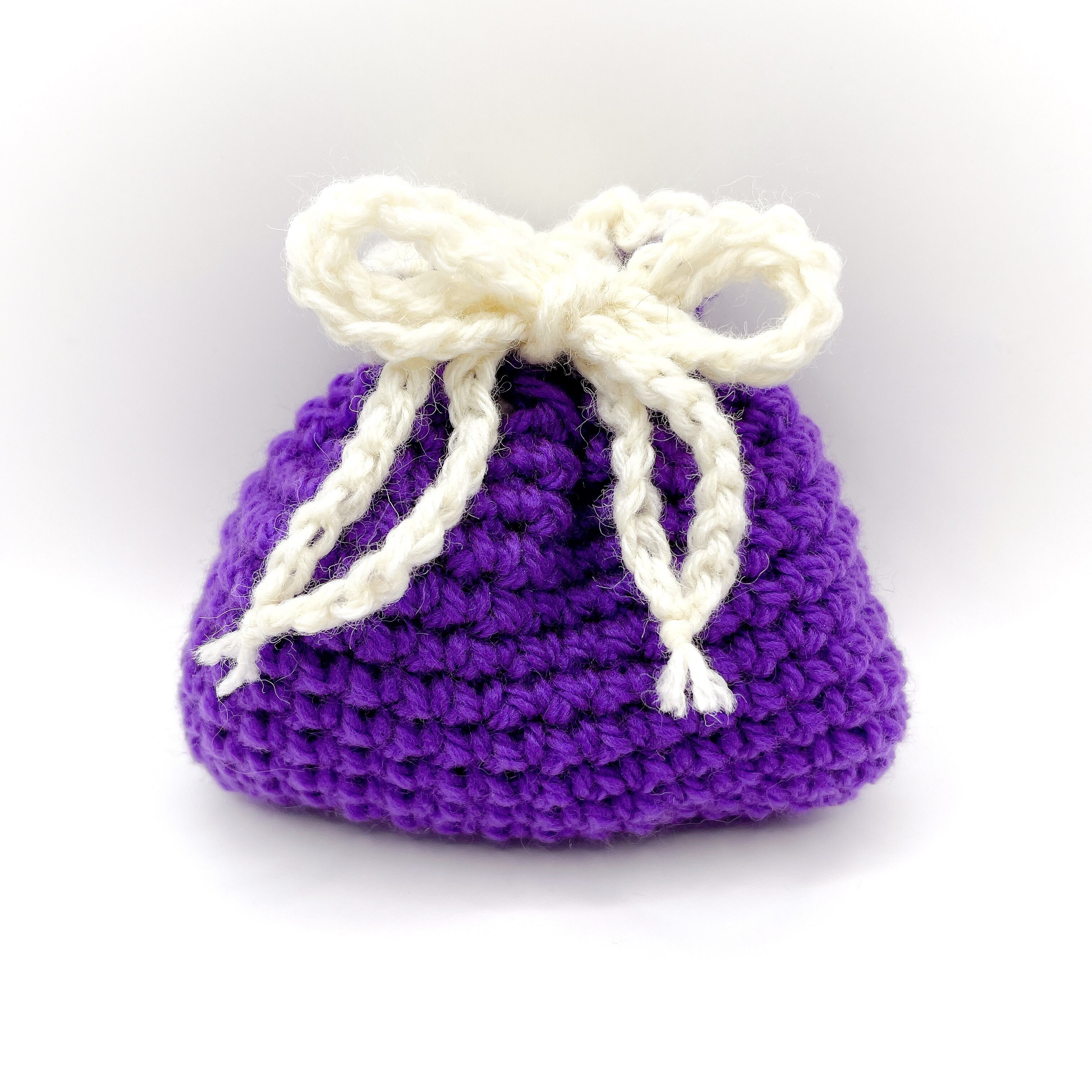 毛糸で編んだ、巾着袋です。