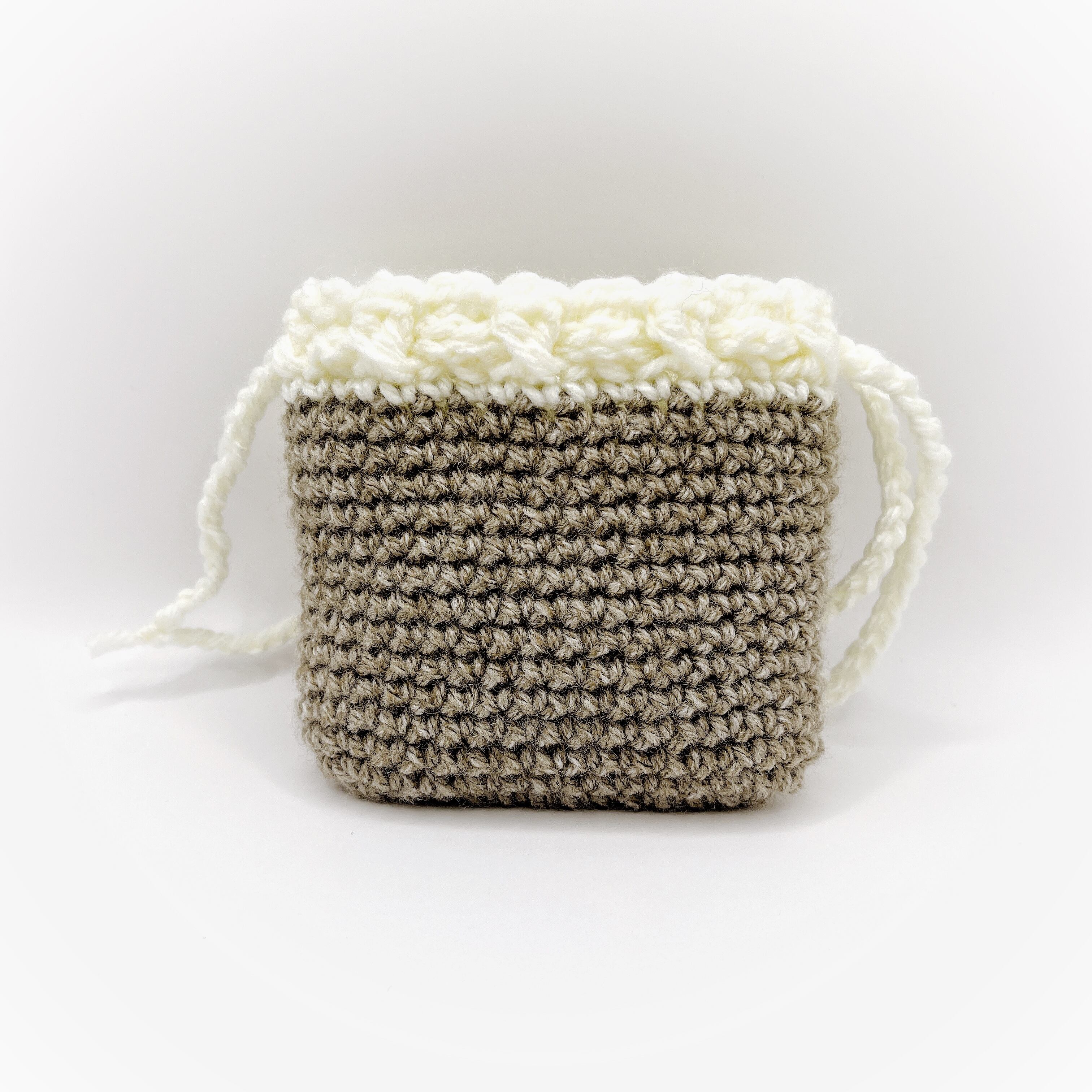 毛糸で編んだ、巾着袋です。