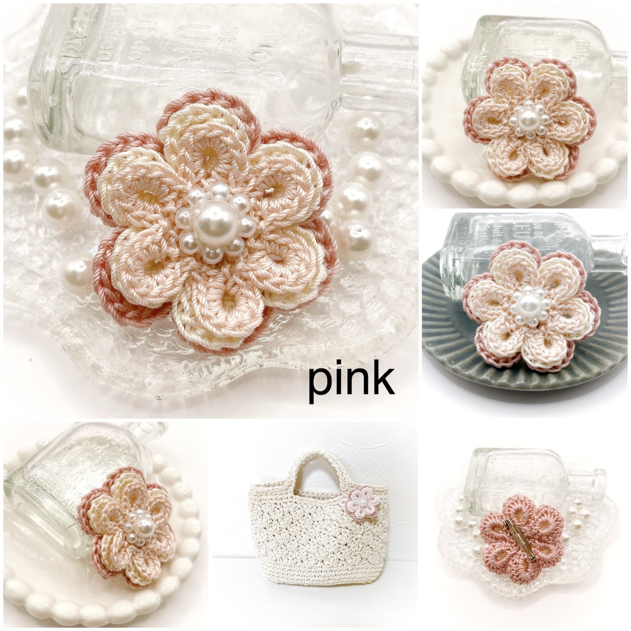 パールでまとめたお花のブローチです。