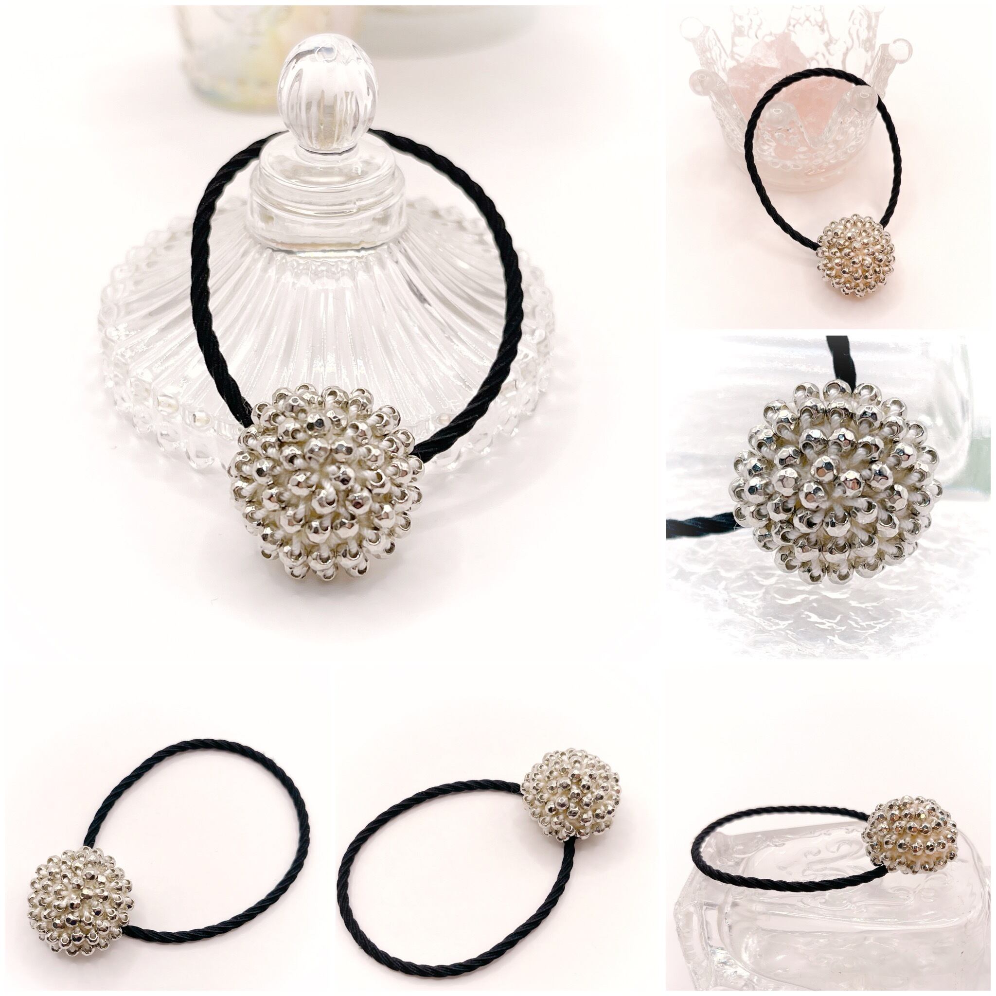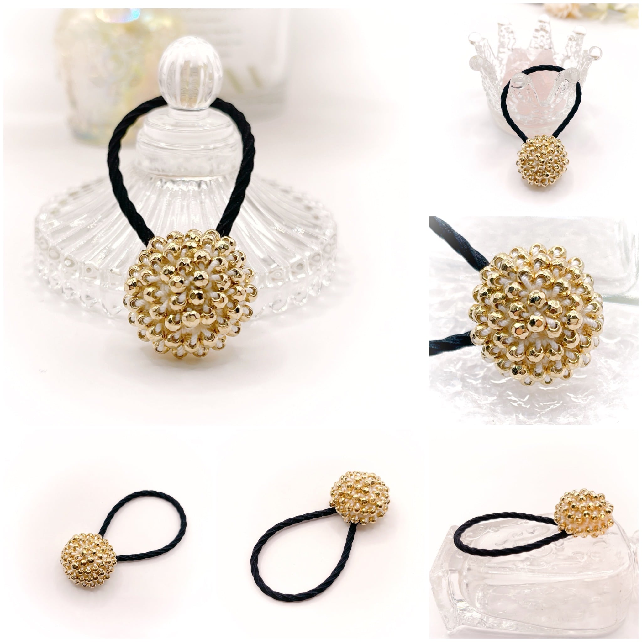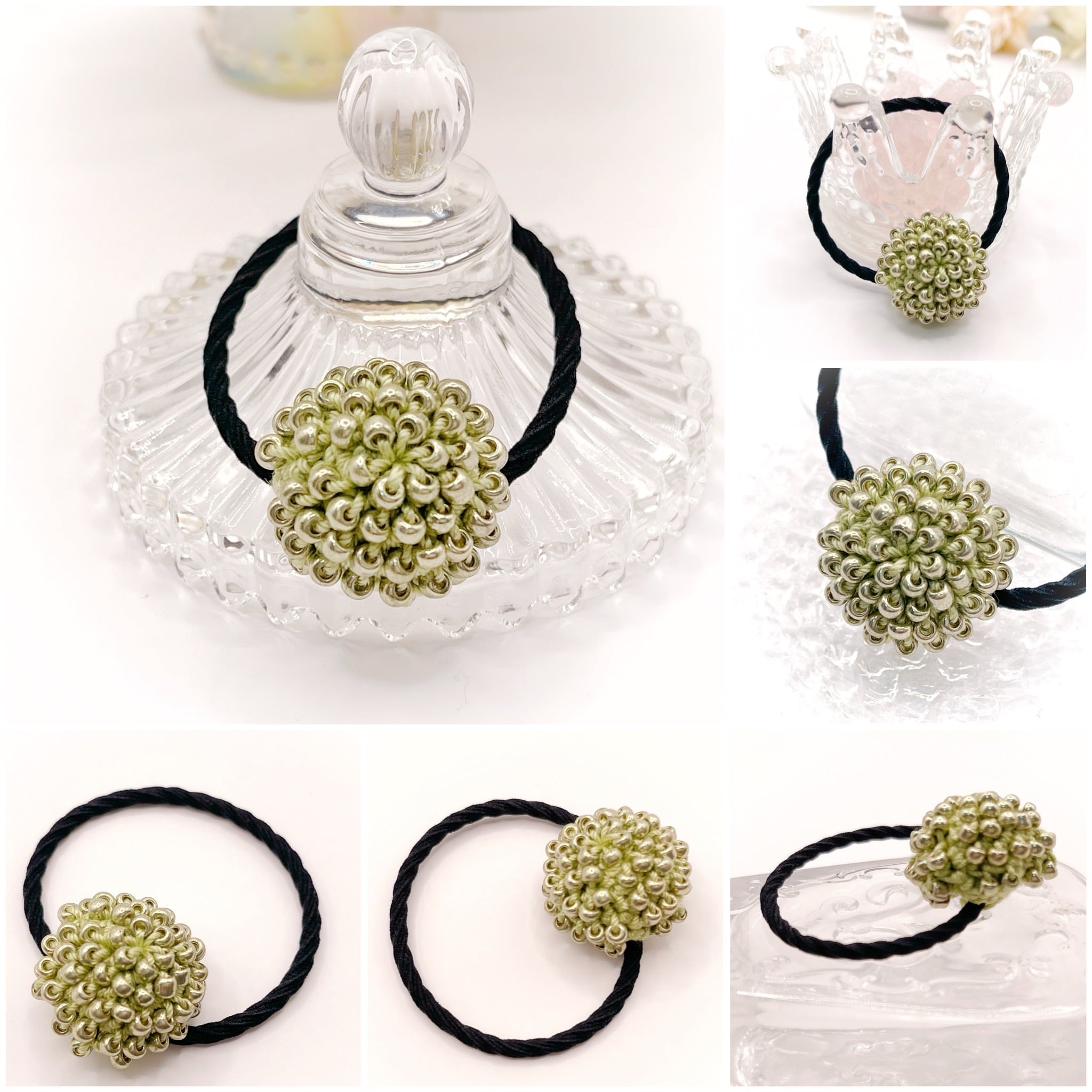 ビーズで編んだ、程よいサイズの丸みのあるヘアゴムです.