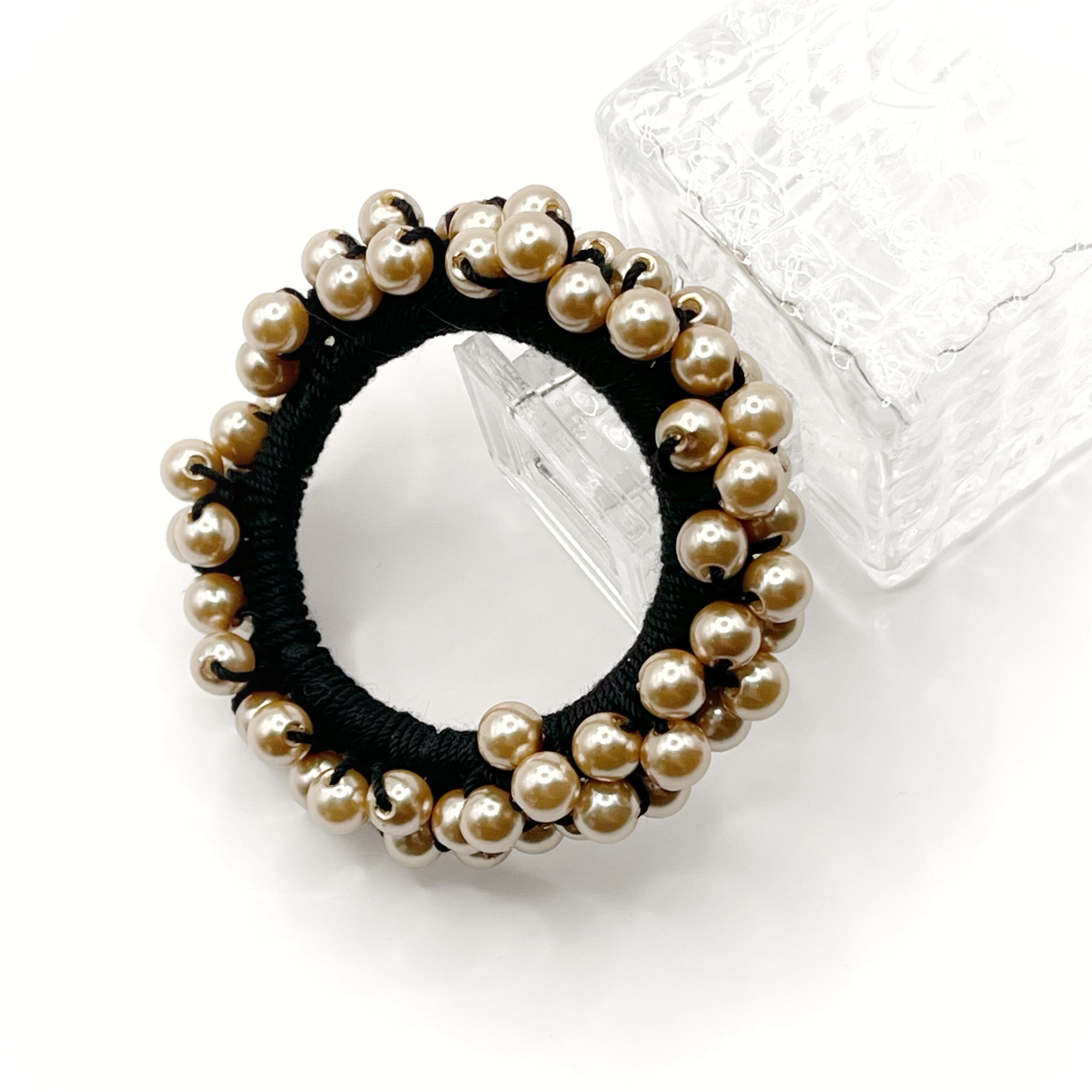 パールビーズをギュギュッとたっぷり編み込んだシュシュです。