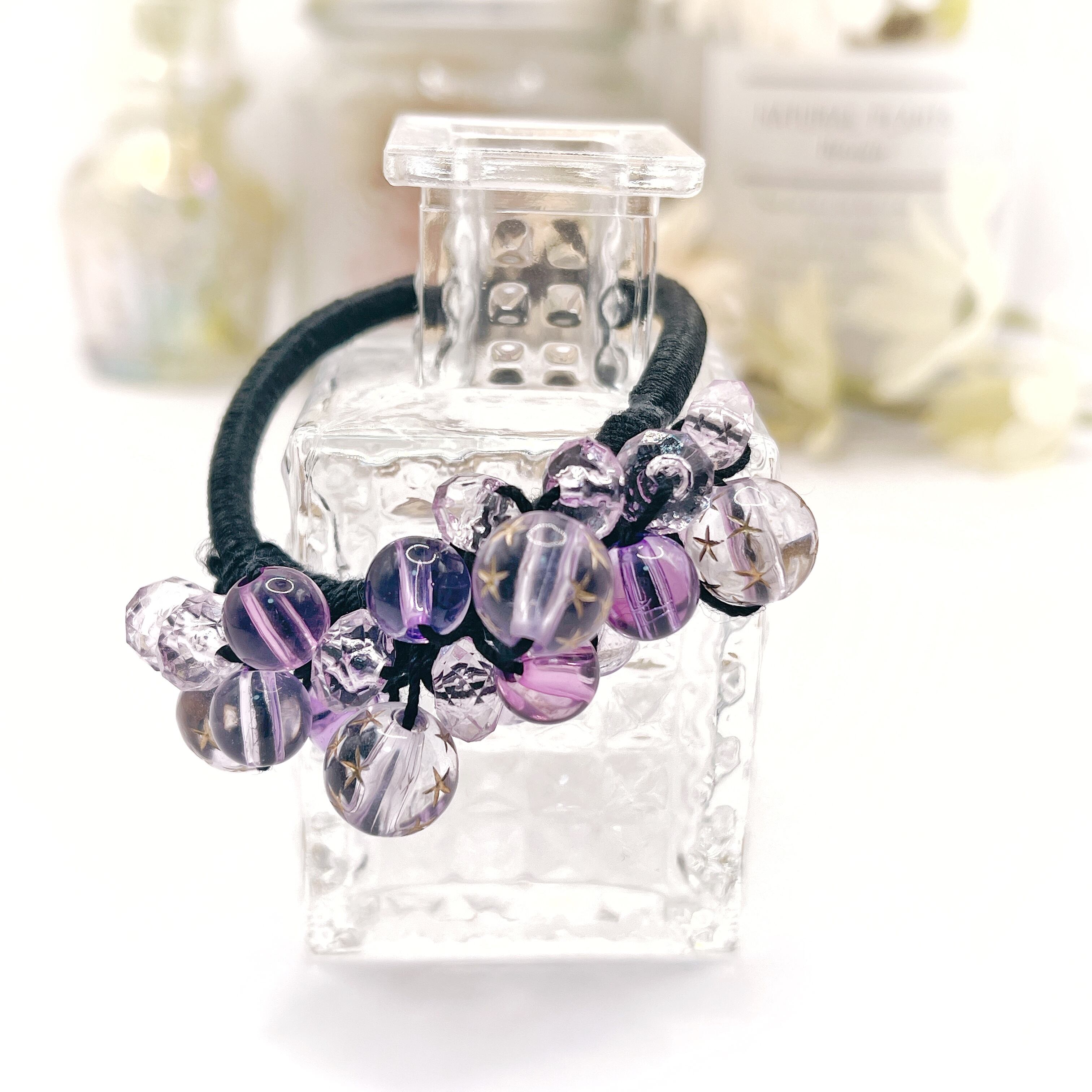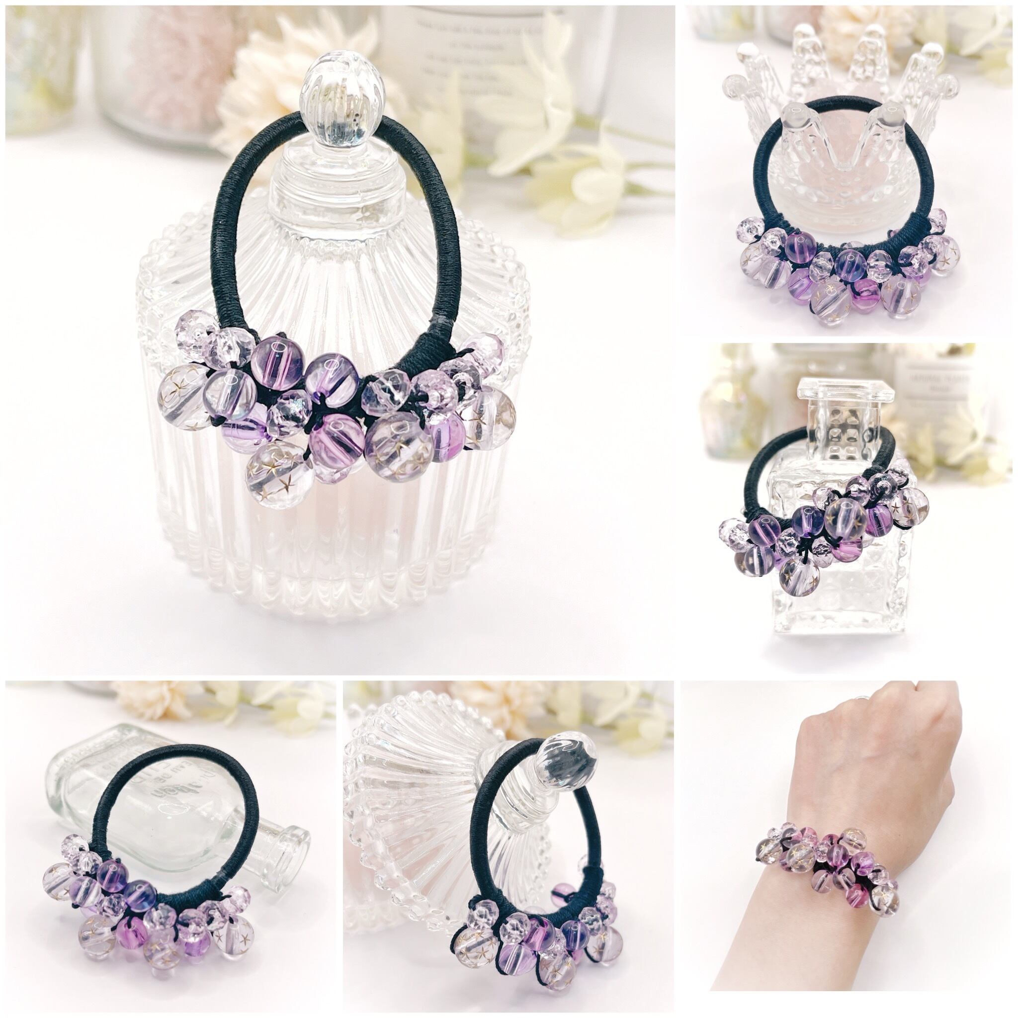 ワントーンのビーズを5種類組み合わせた、ビーズのヘアゴムです。